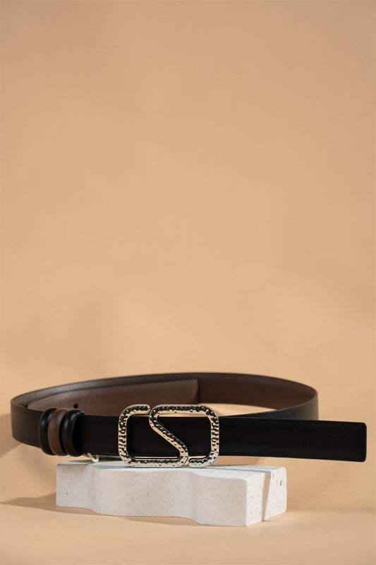 Silver Eclipse Reversible Leather Belt – Noir & Chestnut 2.5cm
