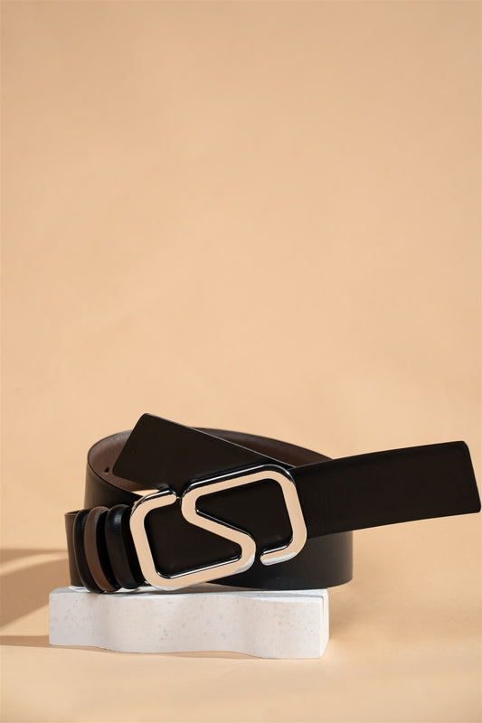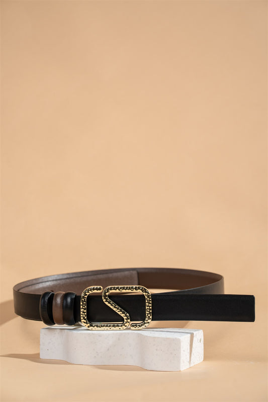 Golden Eclipse Reversible Leather Belt – Noir & Chestnut 2.5cm