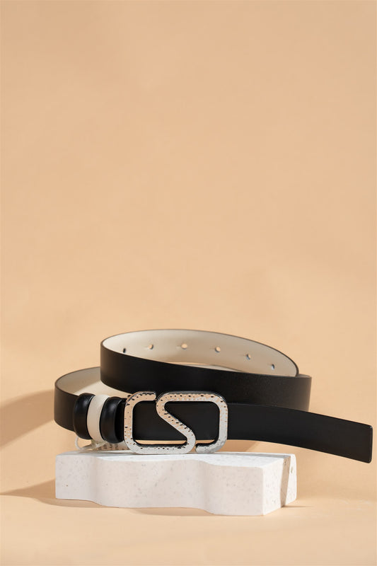 Silver Celestial Reversible Leather Belt – Noir & Oyster 2.5cm